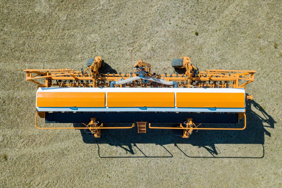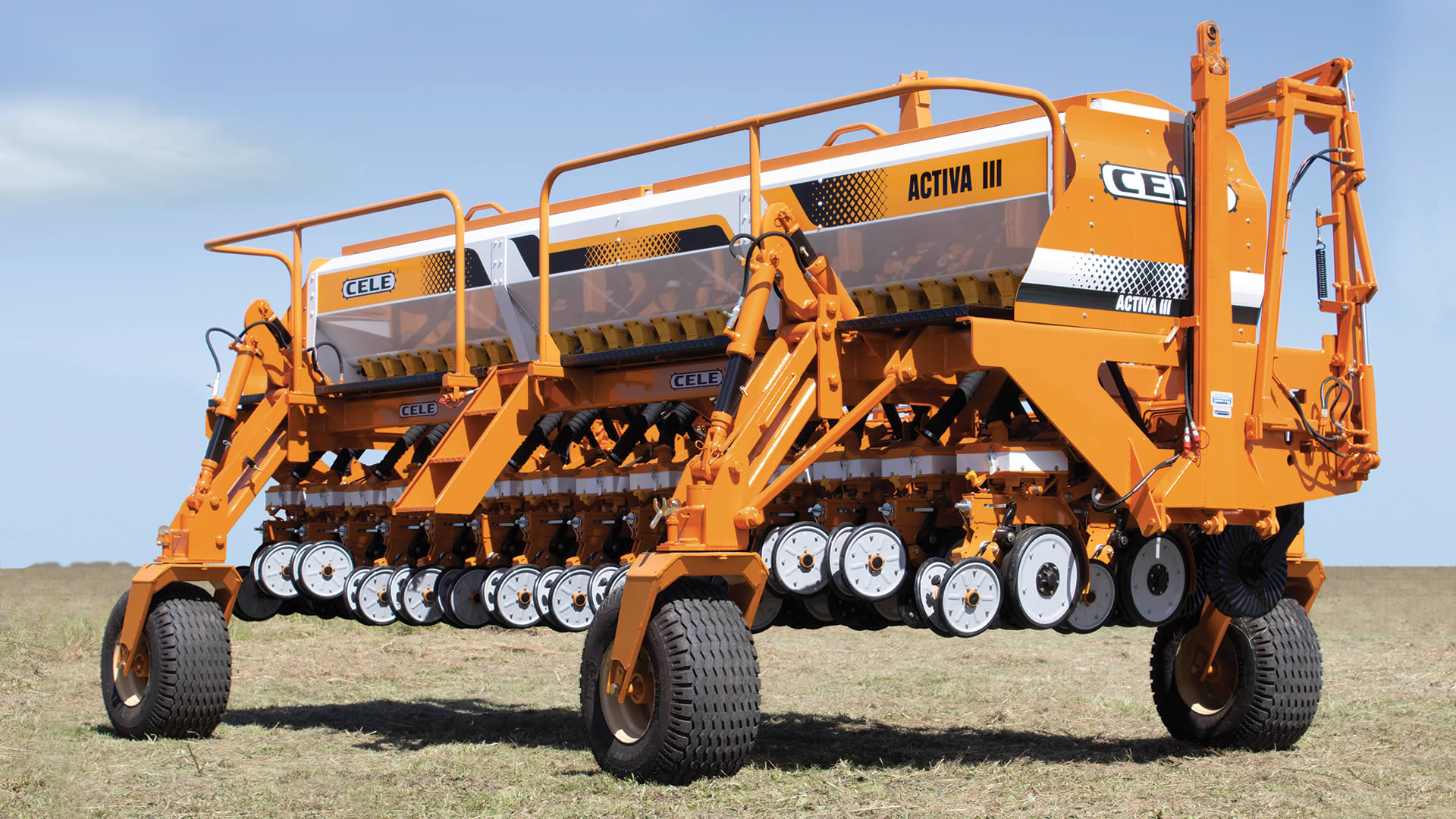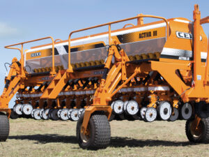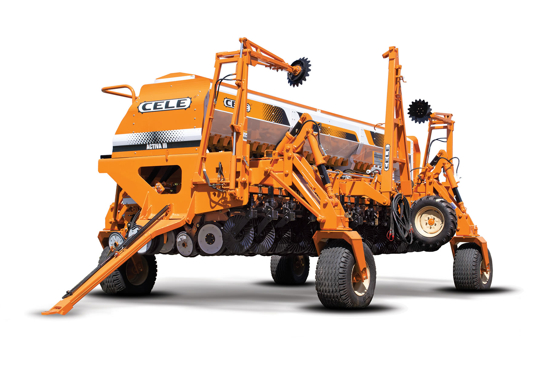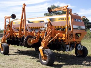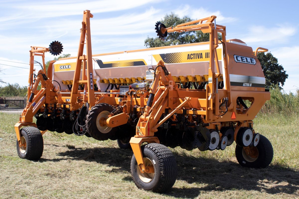 Sembradora de grano fino con gran despeje entre líneas, ideal para lograr una siembra uniforme y eficiente.