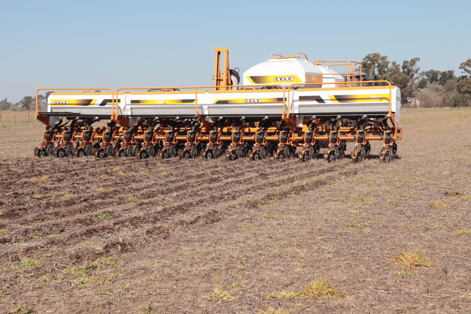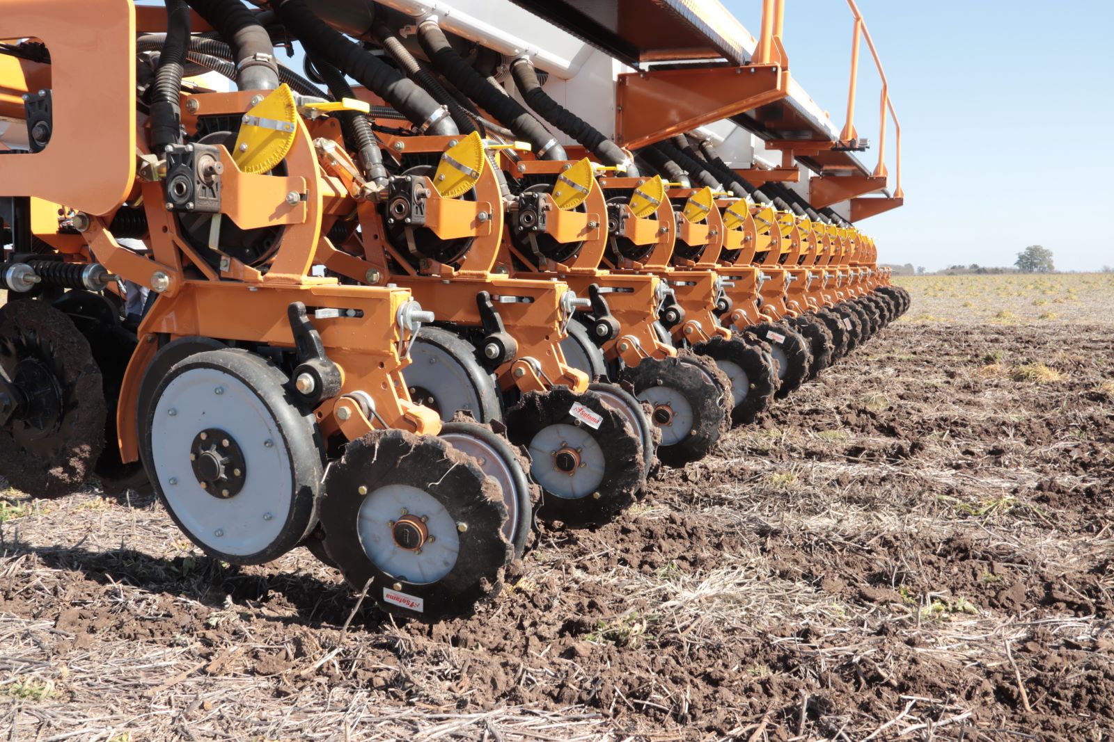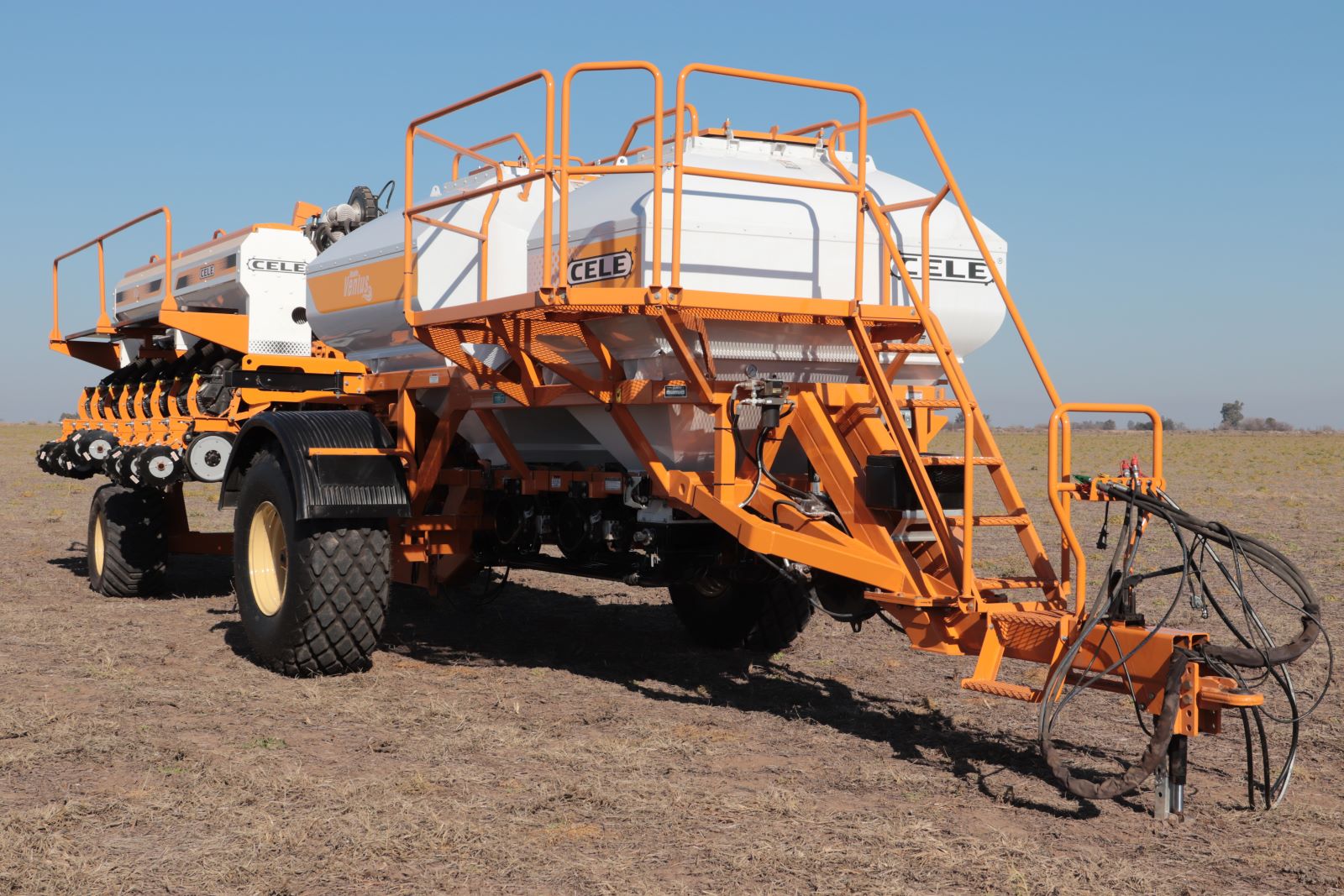 Sembradora Air Drill de granos gruesos, con gran autonomía y sistema de transporte optimizado.