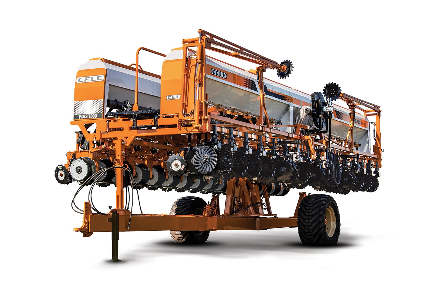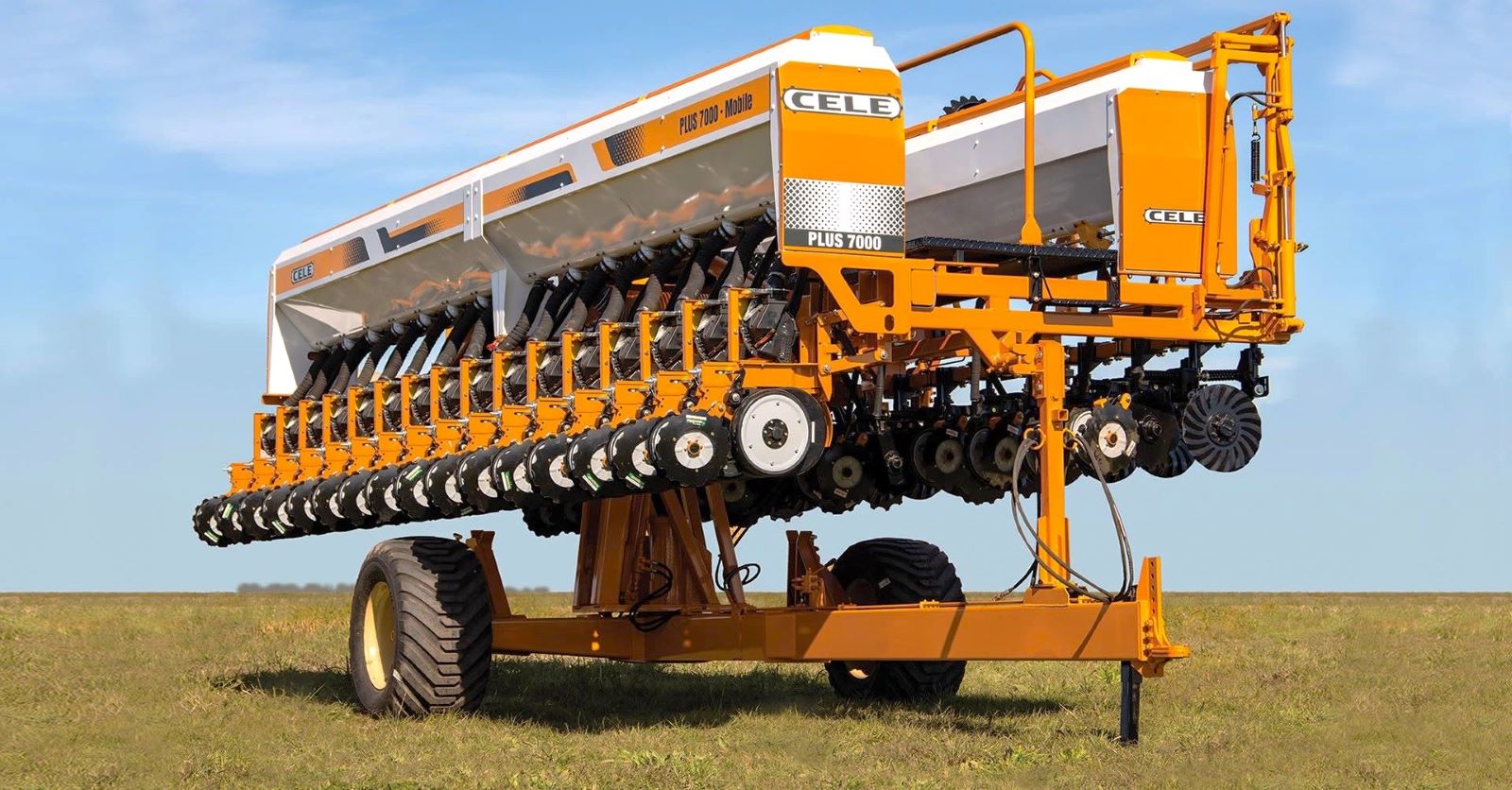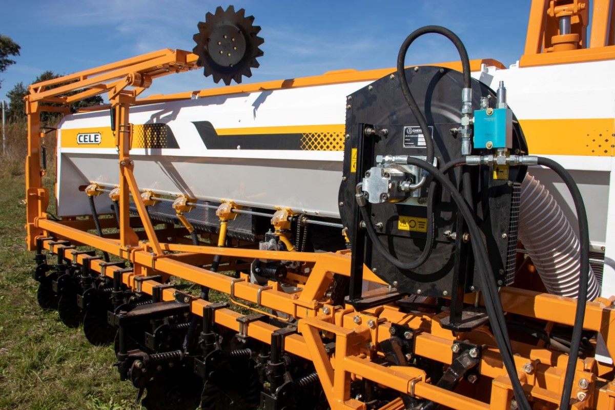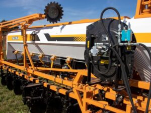 Sembradora de granos gruesos con sistema Mobile, pensada para facilitar el traslado y el trabajo en campo.
