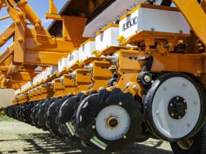 La CELE Air drill Mobile Ventus es una sembradora de granos gruesos con gran autonomía y un sistema de elevación mediante torre inclinada esto permite que el tren de siembra quede dentro del ancho de trocha facilitando el transporte de la misma